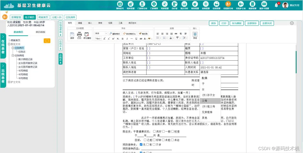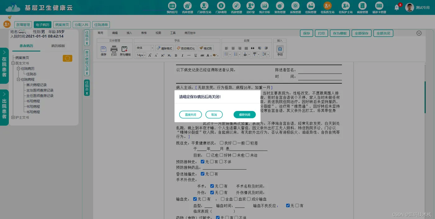 电子病历界面用于给患者书写电子病历,可以查看患者病历。