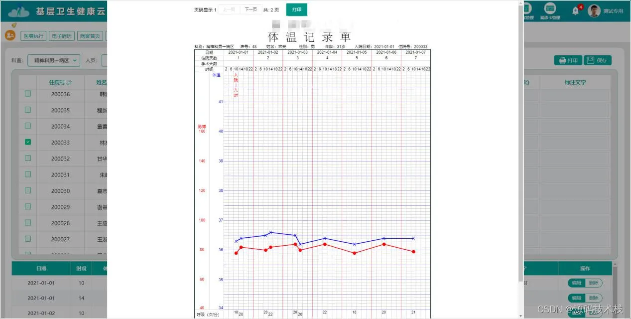 1.医嘱执行界面用于给住院患者执行长期或临时医嘱,长期医嘱内容包括药品、项目、材料和嘱托,临时医嘱还包括出院医嘱,点击基层卫生健康云界面顶部住院护士站导航图标,默认显示医嘱执行界面。