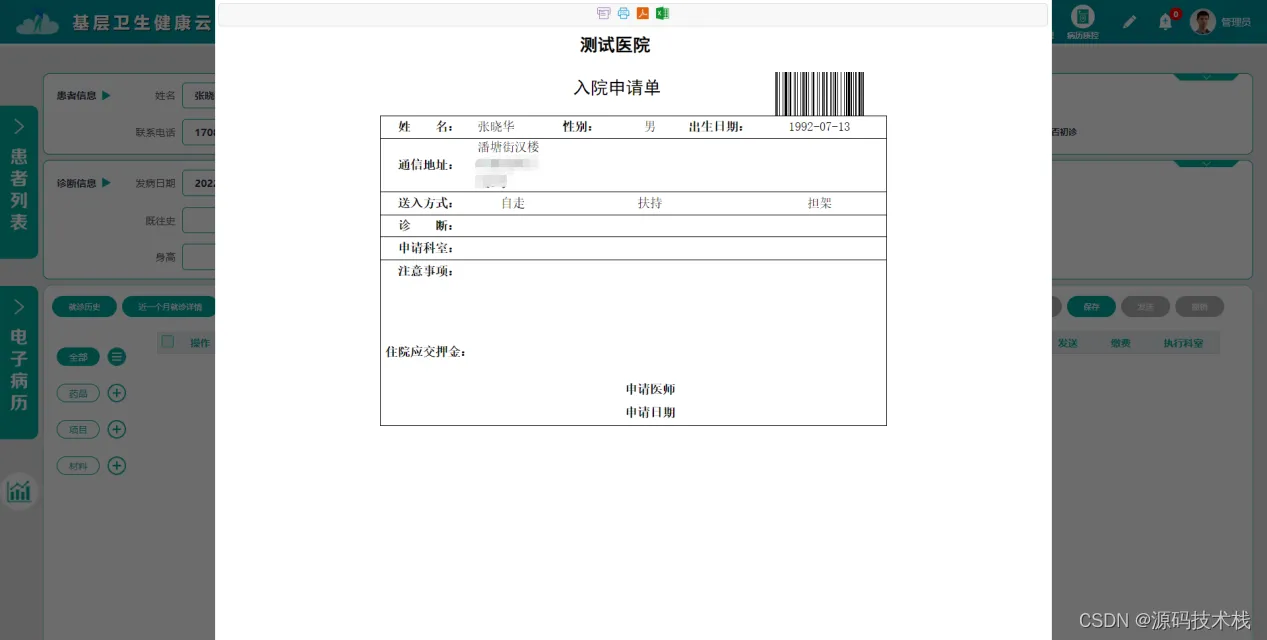 在该模式下,可以对单个患者的病历数据进行新建、编辑、预览、保存,以及打印的操作,是医院比较常用和重要的功能模块,暂不支持在同一窗口下打开多张病历的相关操作。