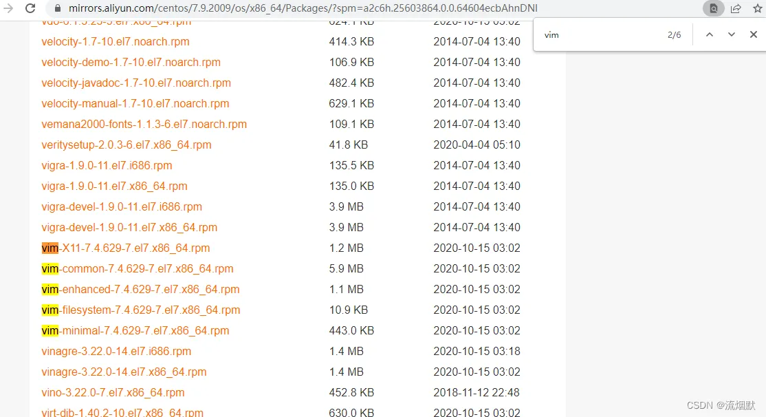 我们首先选择系统版本,如这里的7.9。然后依次选择 /os/x86_64/Packages