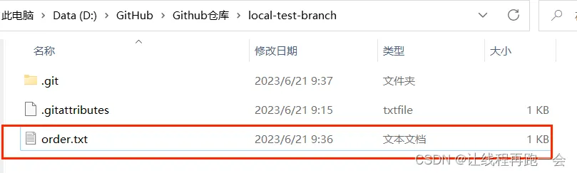 我们切换回 order 分支,并创建 order.txt ,然后提交。