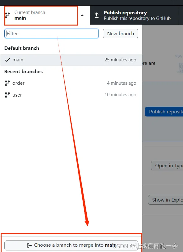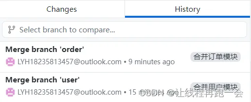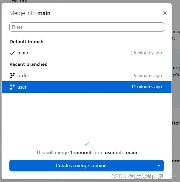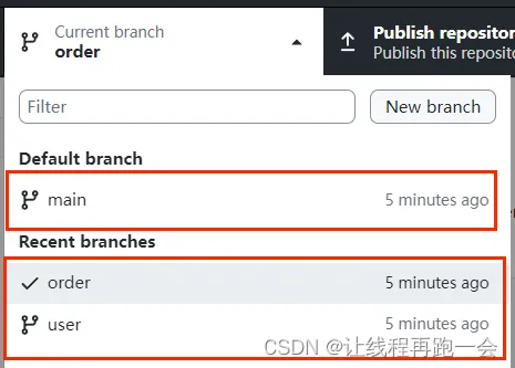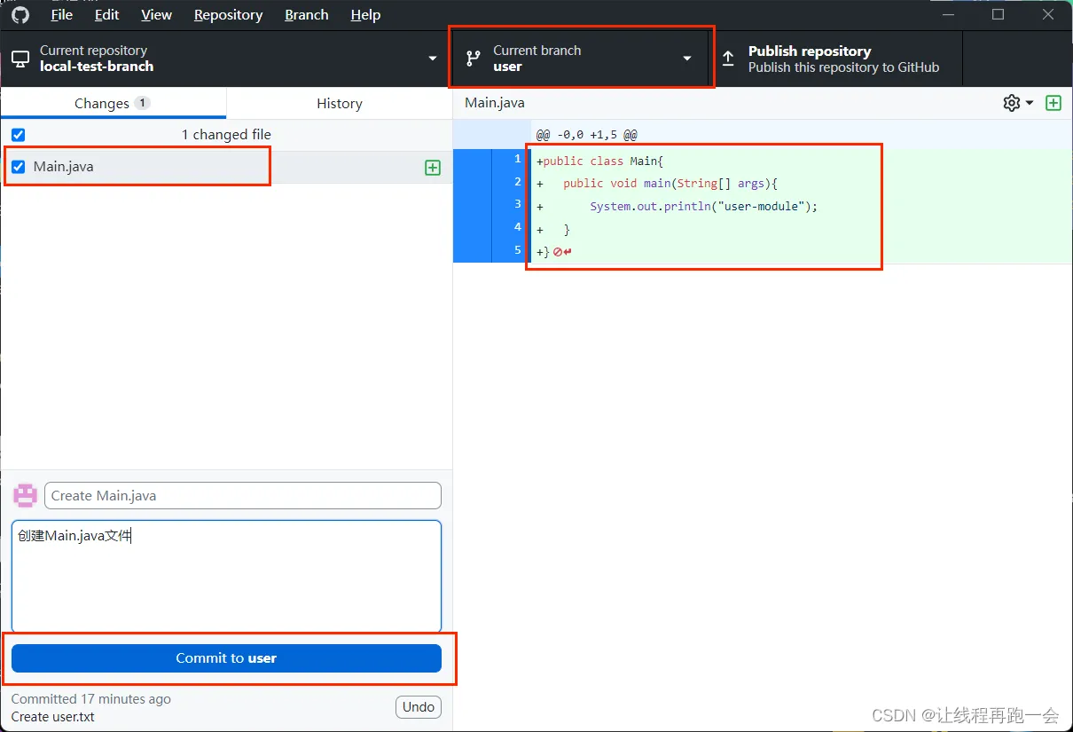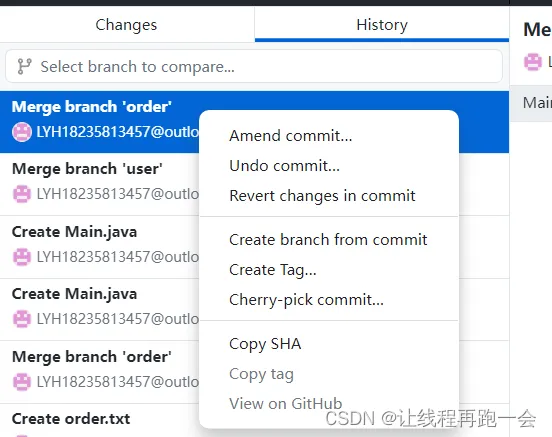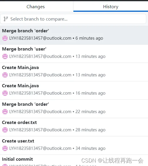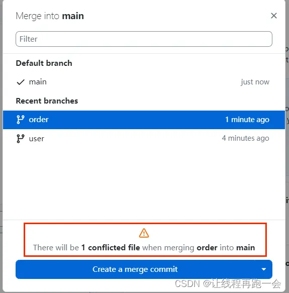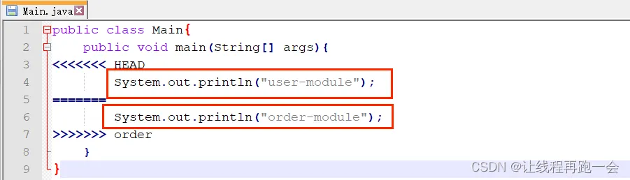 在 user 和 order 分支下各自创建一个 Main.java 文件,再合并到主分支。