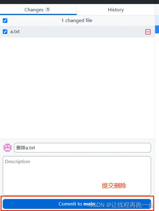 先删除仓库目录下本地的 a.txt ,再提交删除仓库中的文件。