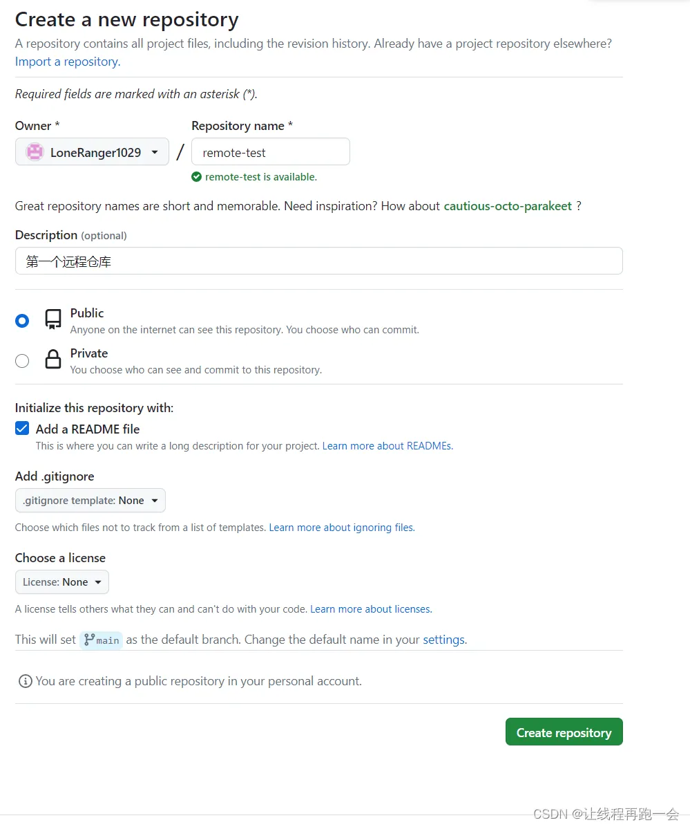 主仓库就是我们的主分支(main),由项目经理王五负责。