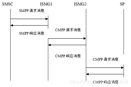 在SP与ISMG之间、SMSC与ISMG之间及ISMG之间的交互过程中均采用异步方式,即任一个网元在收到请求消息后应立即回送响应消息。