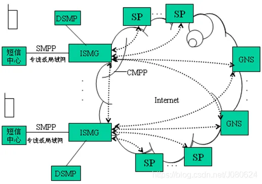 互联网短信网关(ISMG)是业务提供商(SP)与移动网内短信中心之间的中介实体,互联网短信网关一方面负责接收SP发送给移动用户的信息和提交给短信中心。另一方面,移动用户点播SP业务的信息将由短信中心通过互联网短信网关发给SP。另外,为了减轻短信中心的信令负荷,互联网短信网关还应根据路由原则将SP提交的信息转发到相应的互联网短信网关。互联网短信网关通过向汇接网关(GNS)查询的方式获得网关间的转发路由信息。