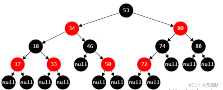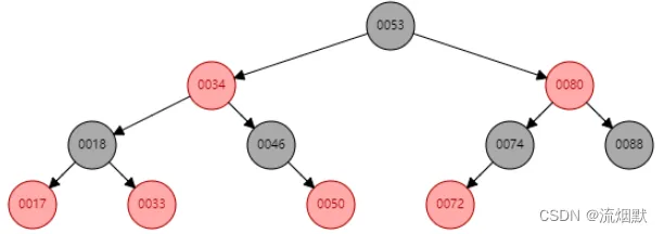 上图与下图是等价的,如果以下图而言,那么叶子结点红色和黑色均有。如果以上图而言,那么叶子结点是虚结点也就是所谓的黑色哨兵。