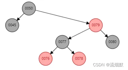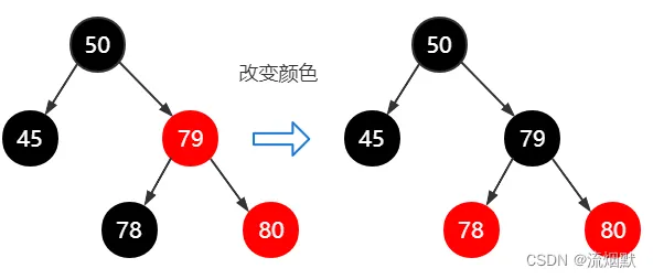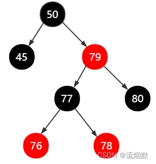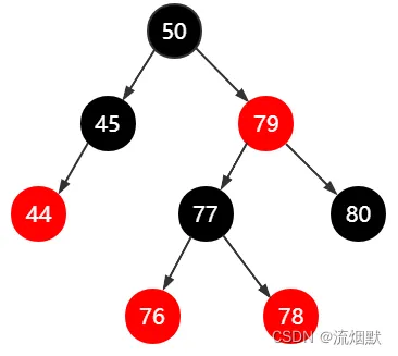 其实不考虑颜色,上面这个调整就是基本的AVL树调整。可以看到此时79/80是连续的红色结点,那么需要进行颜色变换: