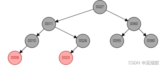 - 有红色前驱结点,如下图中的20