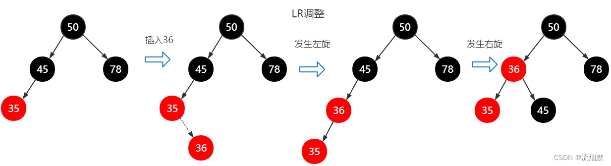 - 插入36结点红色,这时触发LR调整