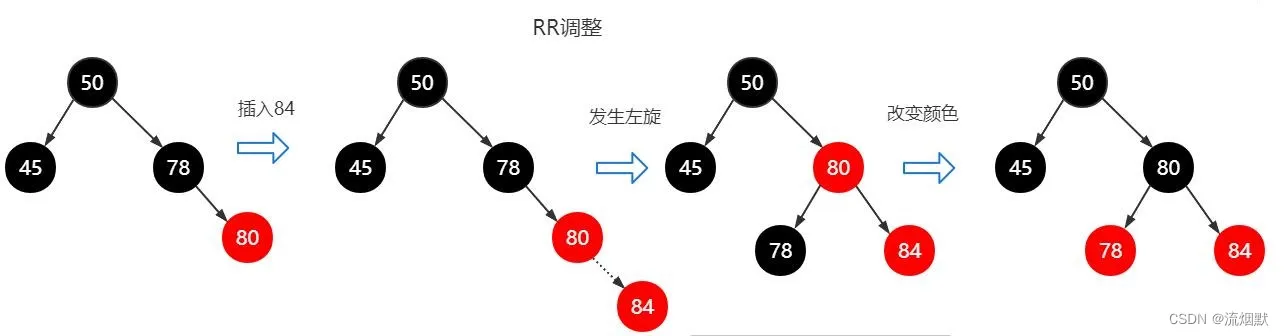 RR调整如下所示,同LL调整一样,先旋转后改变颜色: