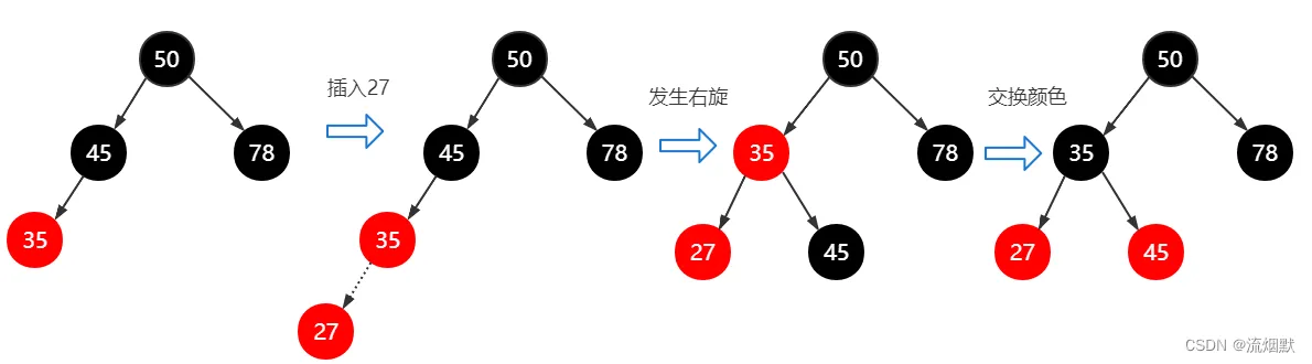 插入红色结点27,27与35形成连续的红色结点