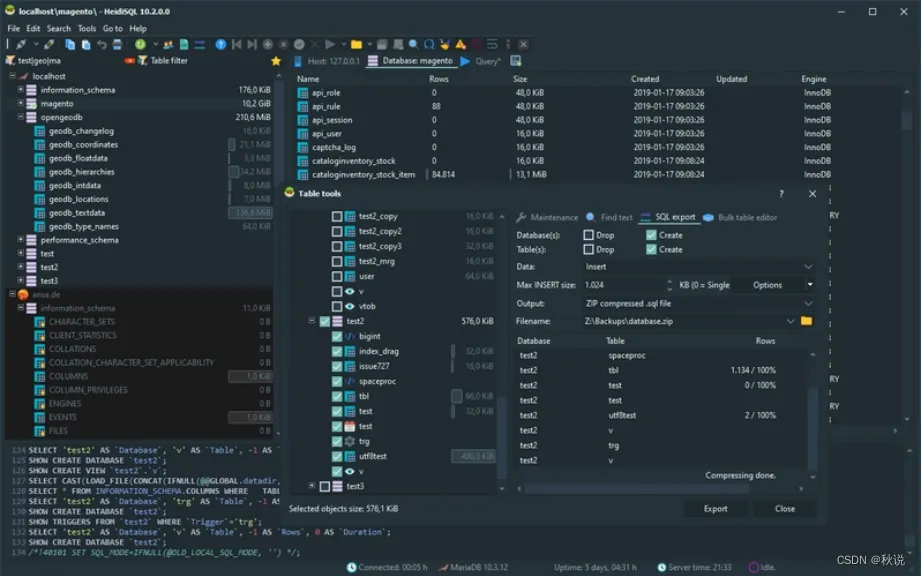 3.HeidiSQL:一个免费、轻量级且易于使用的MySQL客户端,适用于Windows平台。它提供了简洁的界面、SQL查询、数据库管理等常用功能。