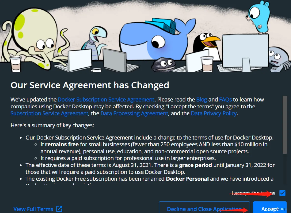 安装完wsl_update_X64.msi后,开始安装Docker Desktop