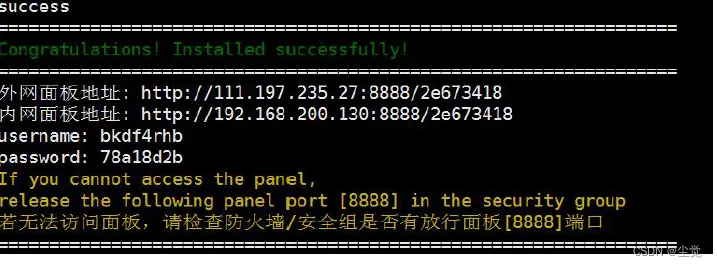 - 安装成功后控制台会显示登录地址,账户密码,复制浏览器打开登录,