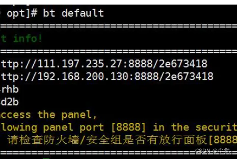 如果bt 的用户名,密码忘记了,使用bt default 可以查看