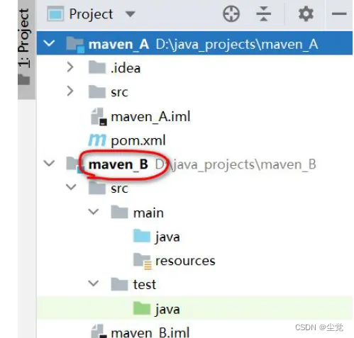 - 创建maven_B java 模块(为了好理解,我们放在一个项目中)