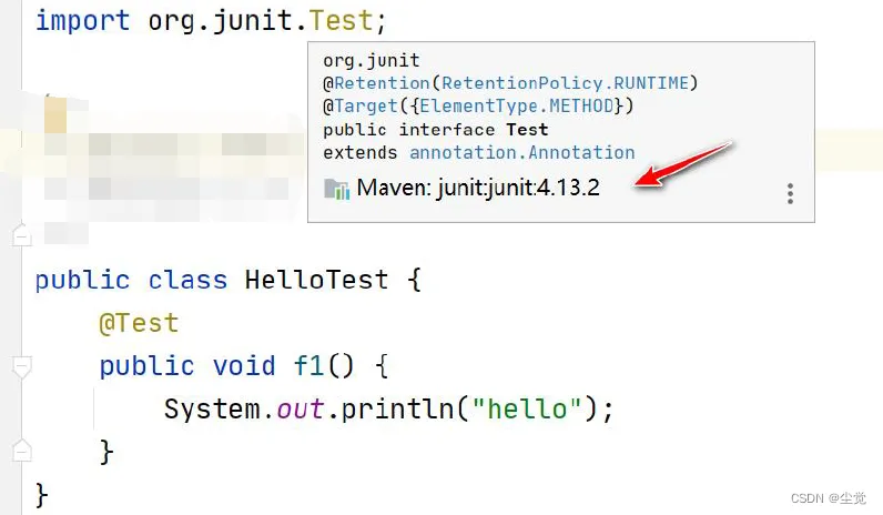 - 为了验证是junit4.13.2 生效还是junit4.12 生效, 写一段代码D:\java_projects\maven_A\src\main\java\HelloTest.java