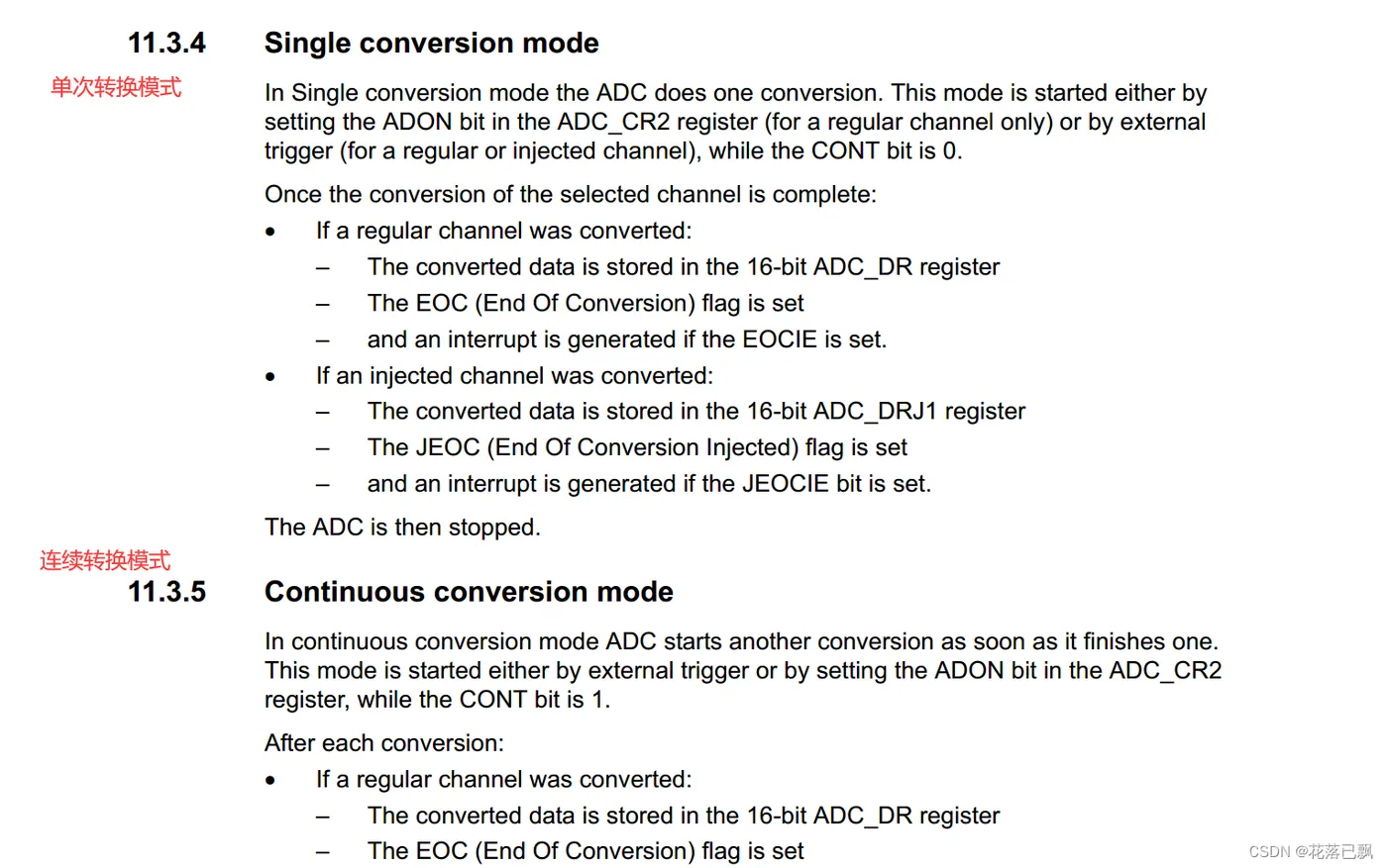 在连续转换模式下,ADC将不断地进行转换,以持续获取选定的通道的模拟信号,直到被显式地停止或发生特定的事件(如中断触发)。