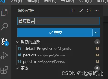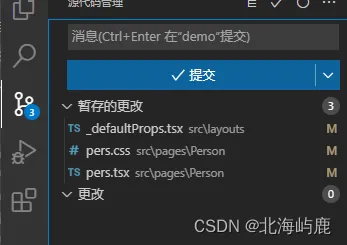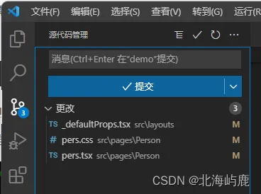 点击左边菜单栏第三个可以看到所有更改过的文件,使用VScode提交代码就是在这里提交。