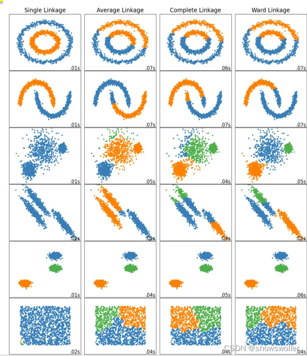 linkage是簇距离度量方法,支持ward、complete、average和single四种方法。complete、average和single分别对应簇最大距离、簇平均距离和簇最小距离。