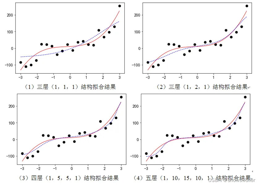 如果网络结构过于简单,会欠拟合,如果网络结构过于复杂,则会过拟合