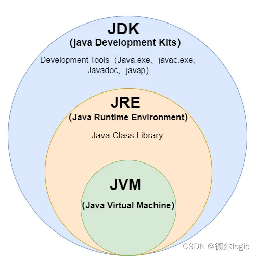 - JDK = JRE + Java开发工具(Java、javac、javadoc、javap等等)