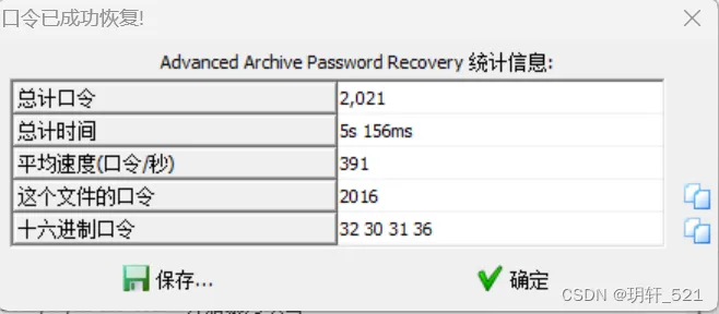 1、根据压缩包的名字提示我们使用4位纯数字进行破解。使用ARCHPR工具,选定参数,破解得到密码为5790。