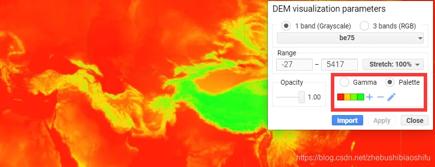 对于单波段图像数据,我们可以通过“Palette”选项对其颜色加以配置。