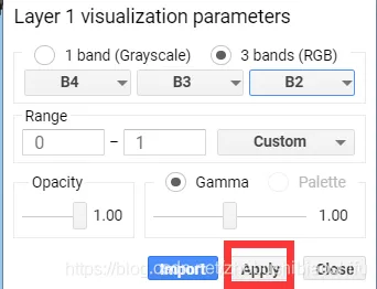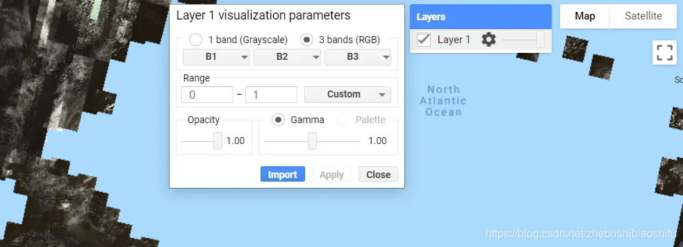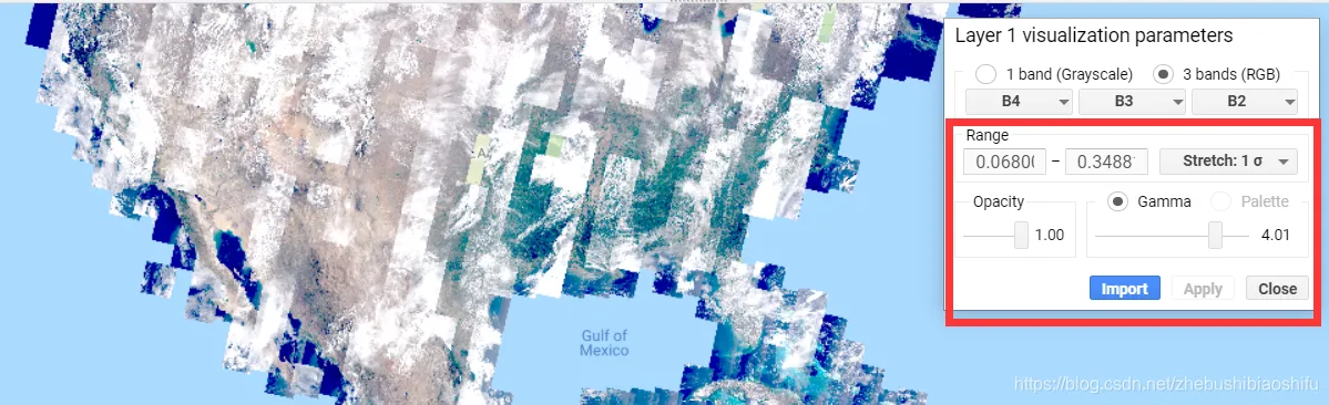 在地图右上角的“Layers”中,我们可以对影像显示的波段组合、数值范围、拉伸、透明度等加以调整。