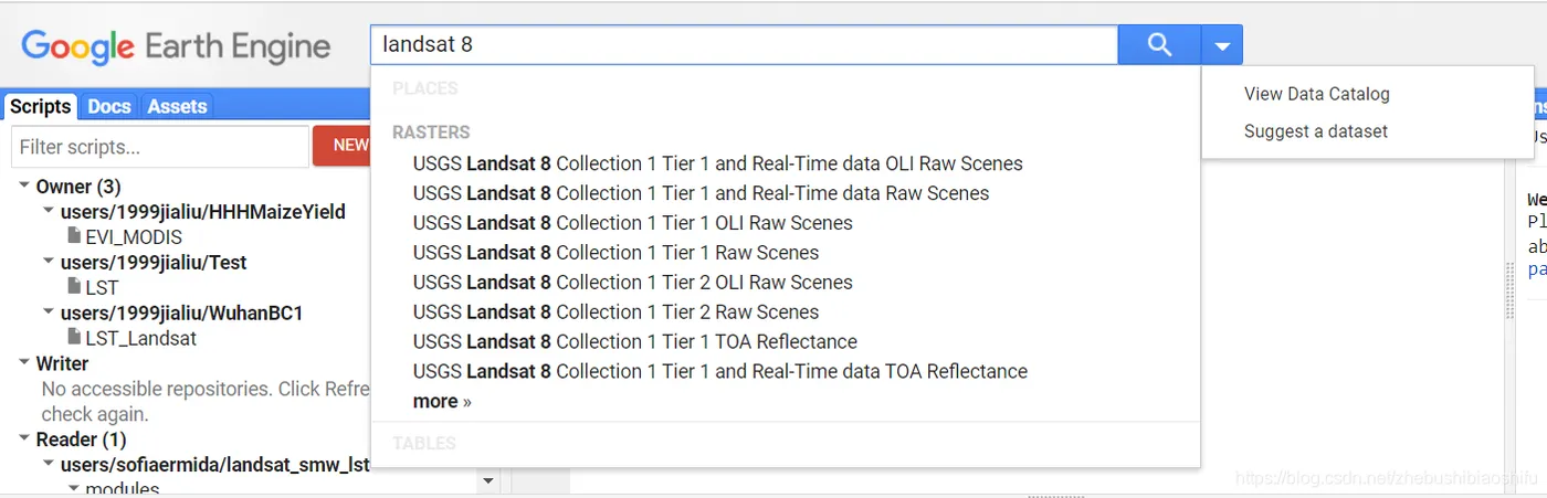 首先,打开Google Earth Engine,在搜索栏中输入landsat 8。