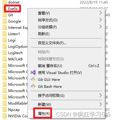 接下来,在这一文件夹的名称处右键,选择“属性”。