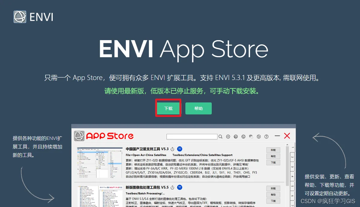 首先,我们在App Store工具的官方下载地址(https://envi.geoscene.cn/appstore/),点击“下载”。