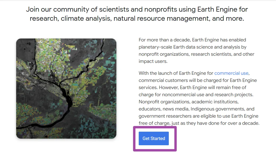 首先,我们访问GEE的官网(https://earthengine.google.com/noncommercial/),并选择点击如下图所示的“Noncommercial”选项。