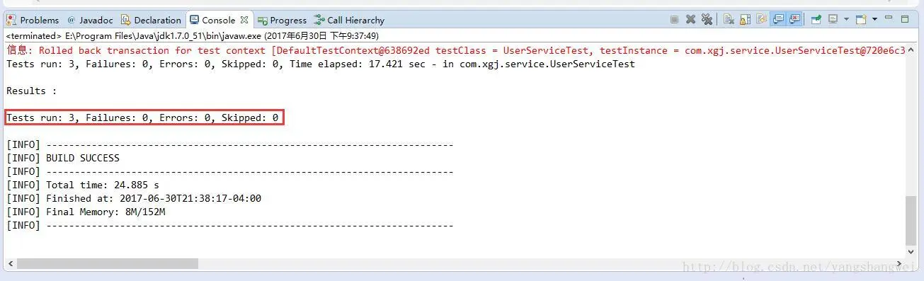 我们在UserService中看不出来任何事务操作的影子,这正是Spring的高明之处,通过注解和配置文件配置的方式,将我们从事务操作单调机械的代码中解脱出来。