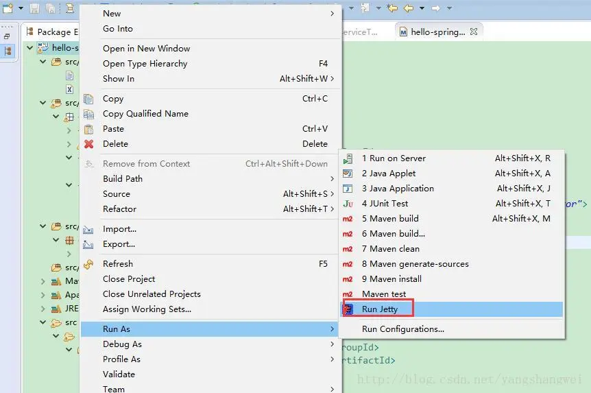 这里我们使用jetty服务器插件,首先在pom.xml中配置插件