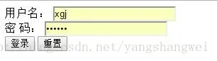 <%@ page language="java" contentType="text/html; charset=UTF-8" pageEncoding="UTF-8"%> <%@ taglib uri="http://java.sun.com/jsp/jstl/core" prefix="c"%> <html> <head> <title>登录</title> </head> <body> <c:if test="${!empty error}"> <font color="red"><c:out value="${error}" /></font> </c:if> <form action="<c:url value="loginCheck.html"/>" method="post"> 用户名: <input type="text" name="userName"> <br> 密 码: <input type="password" name="password"> <br> <input type="submit" value="登录" /> <input type="reset" value="重置" /> </form> </body> </html>