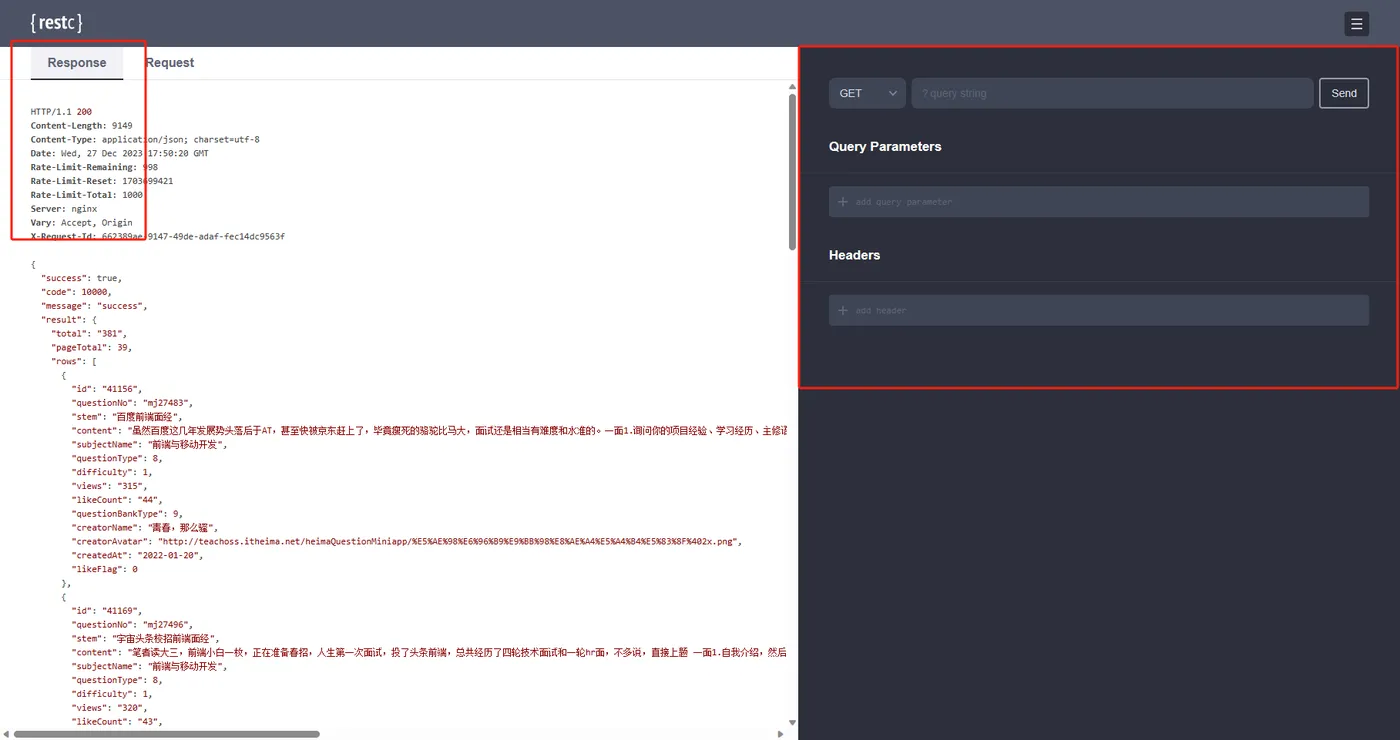 右侧模拟发起请求,左侧响应: