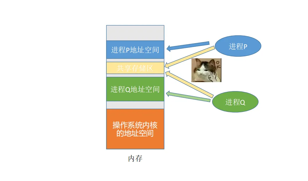 基于存储区的共享:操作系统在内存中划出一块共享存储区,数据的形式、存放位置都由通信进程控制,而不是操作系统。这种共享方式速度很快,是一种高级通信方式。