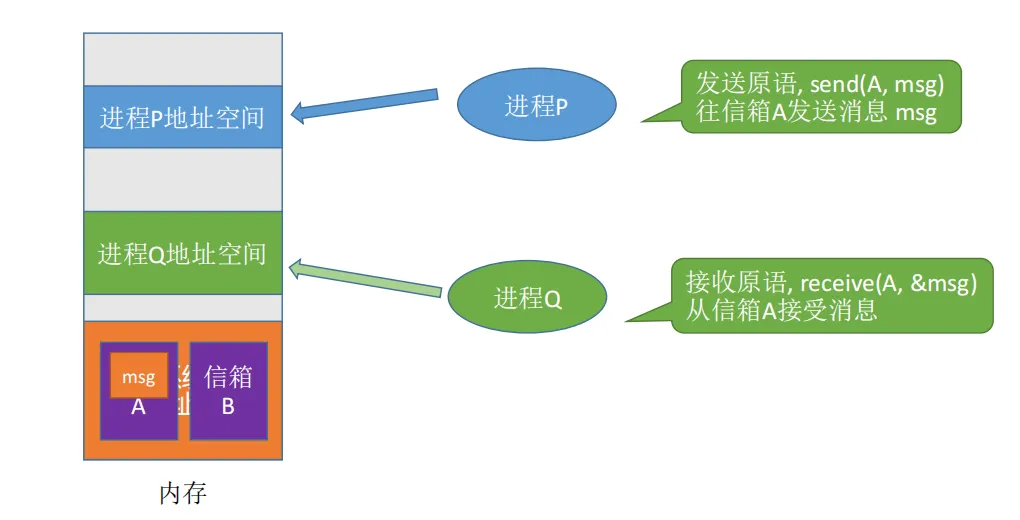 间接通信方式:以“信箱”作为中间实体进行消息传递。