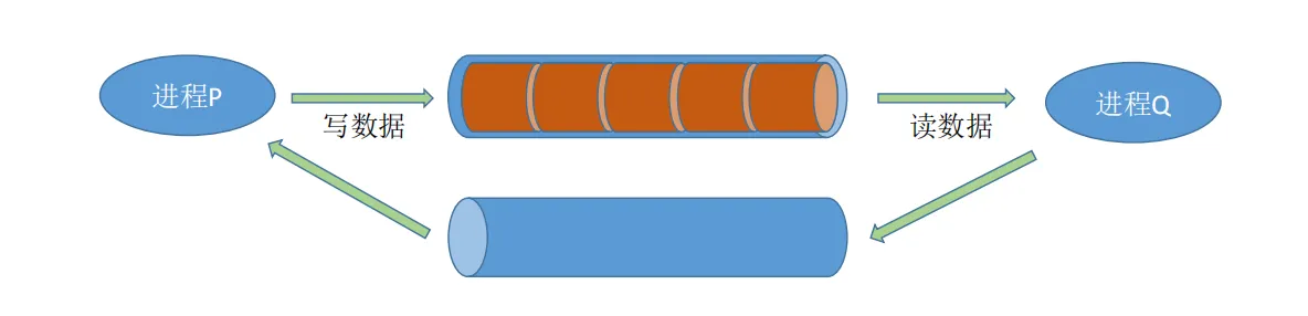 管道只能采用半双工通信,某一时间段内只能实现单向的传输。如果要实现双向同时通信,则需要设置两个管道。