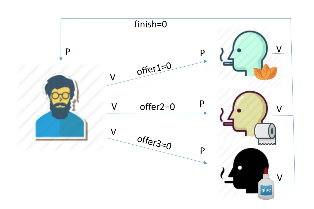 - 可以对哲学家进程施加一些限制条件,比如最多允许四个哲学家同时进餐。这样可以保证至少有一个哲学家是可以拿到左右两只筷子的