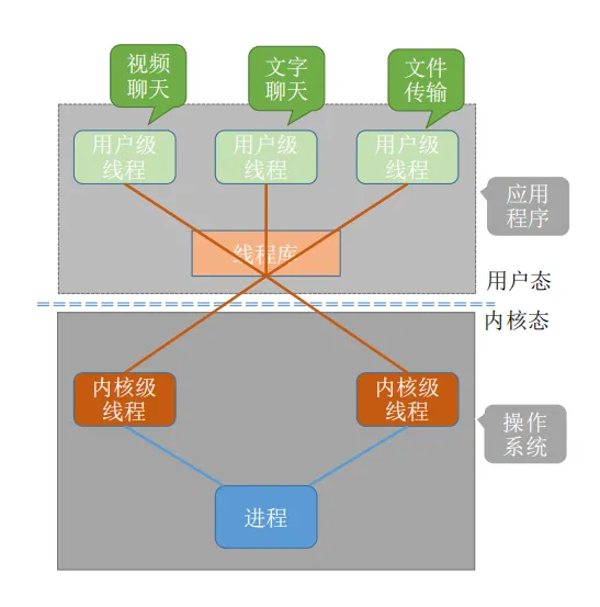 - 用户级线程中,线程切换可以在用户态下即可完成,无需操作系统干预。