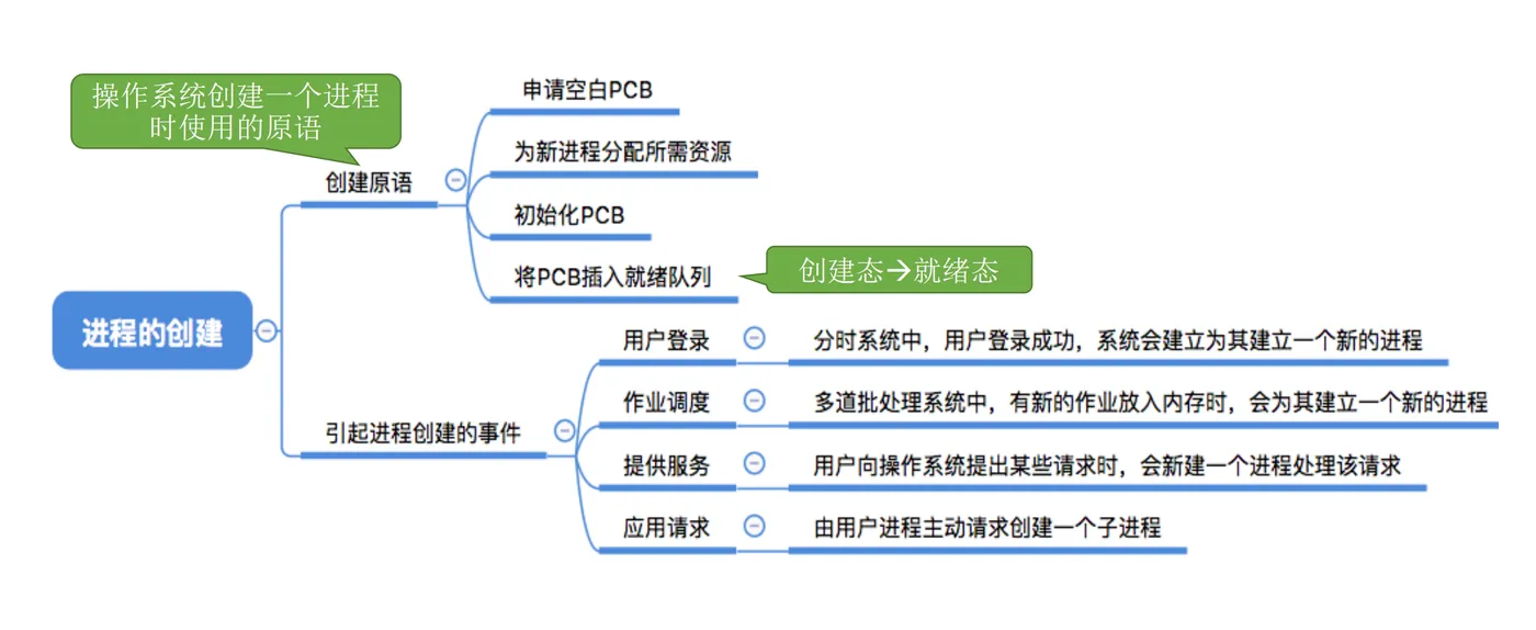 创建态(新建态):进程正在被创建,操作系统为新进程分配资源、创建PCB