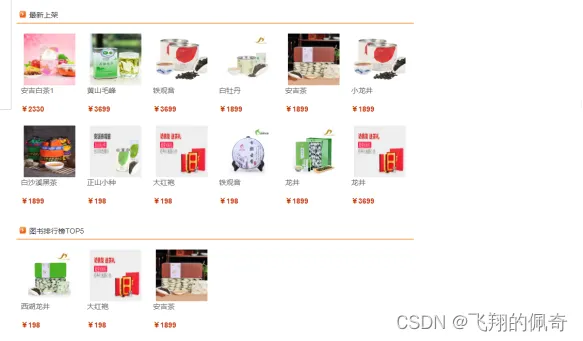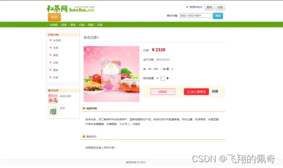 前台功能:茶叶分类模块;加入购物车,茶叶收藏,下单;支持根据名称全局查询 茶叶信息