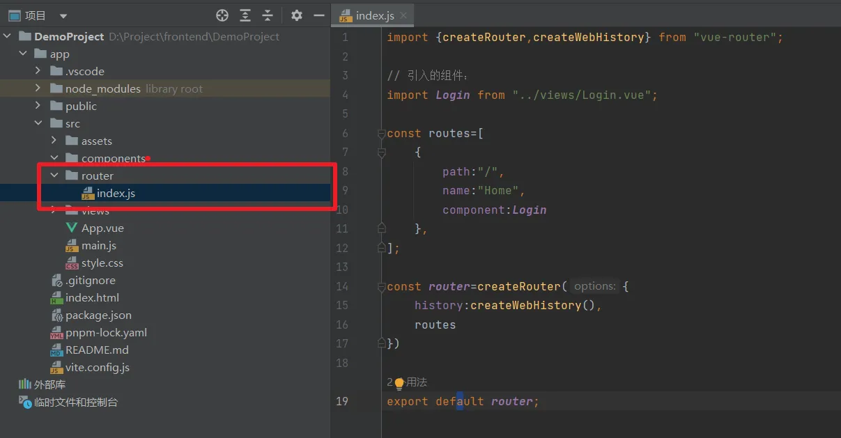 创建 router 目录,在 router 目录下创建 index.js 文件: