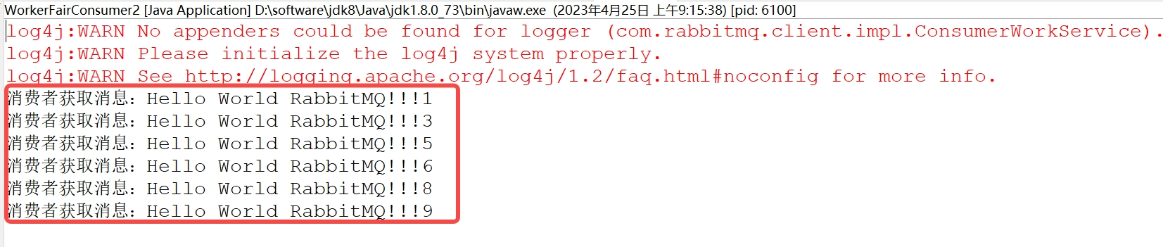 channel.basicConsume(QUEUE_NAME2, true, defaultConsumer);