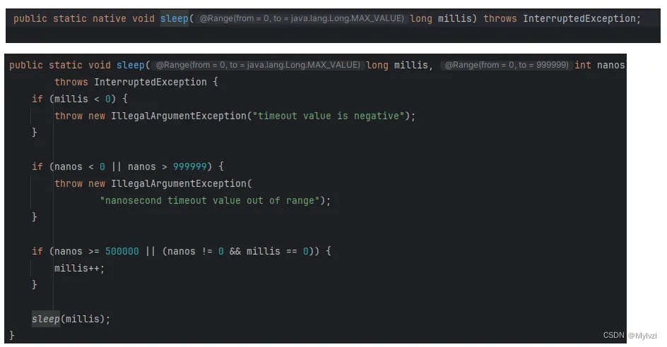 1.sleep方法是Thread类的一个类方法,可以直接通过类名来访问