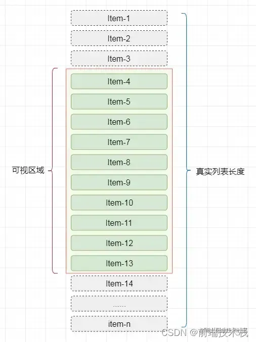 虚拟列表其实是按需显示的一种实现,即只对可见区域进行渲染,对非可见区域中的数据不渲染或部分渲染的技术,从而达到极高的渲染性能。