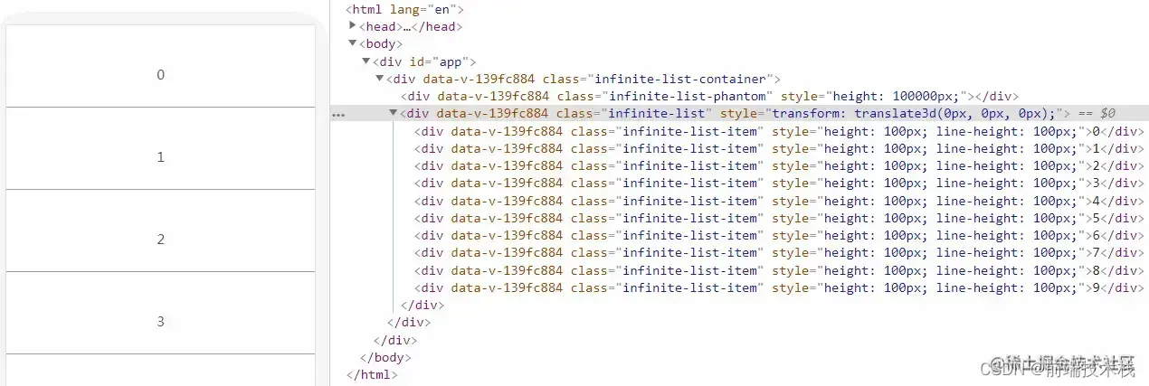 我们再看看之前那个虚拟列表实现链接里的效果: